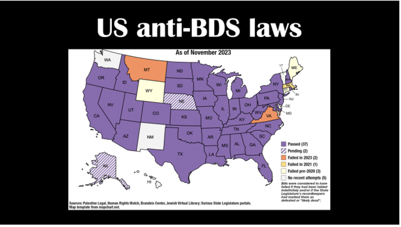 In the United States, 37 states have laws prohibiting state-funded institutions from engaging in boycotts against Israel. These laws are not symbolic—they have real consequences.